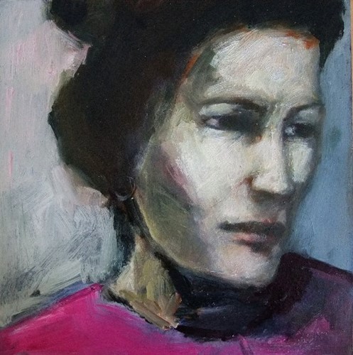 This image was painted from a very small and grainy, black and white family photo, which had been taken before I was born. In painting this, I find it is impossible to visit the past without changing it. Because I knew this subject well (my Oma –grandma) I still feel I am in conversation with her. Our relationship and its contentions are ongoing…our argument over clothing is ongoing too. Oma would not have worn a hot pink coat.